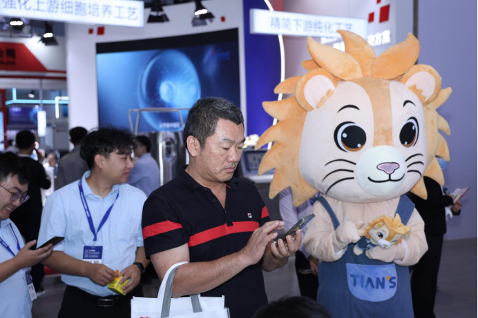 在本屆藥機展上,天俱時集團(tuán)的品牌吉祥物—“天小獅”首發(fā)亮相,他將天俱時集團(tuán)的形象擬人化。飄逸的鬃毛象征著天俱時集團(tuán)二十五年來永不停歇,向前奔跑的姿態(tài);尾部的點綴則化用了品牌logo中的標(biāo)志性元素,意味著靈感的誕生和創(chuàng)新的力量。熱情、勇敢的天小獅也憑借自身可愛的形象吸引著眾多觀眾前來打卡。