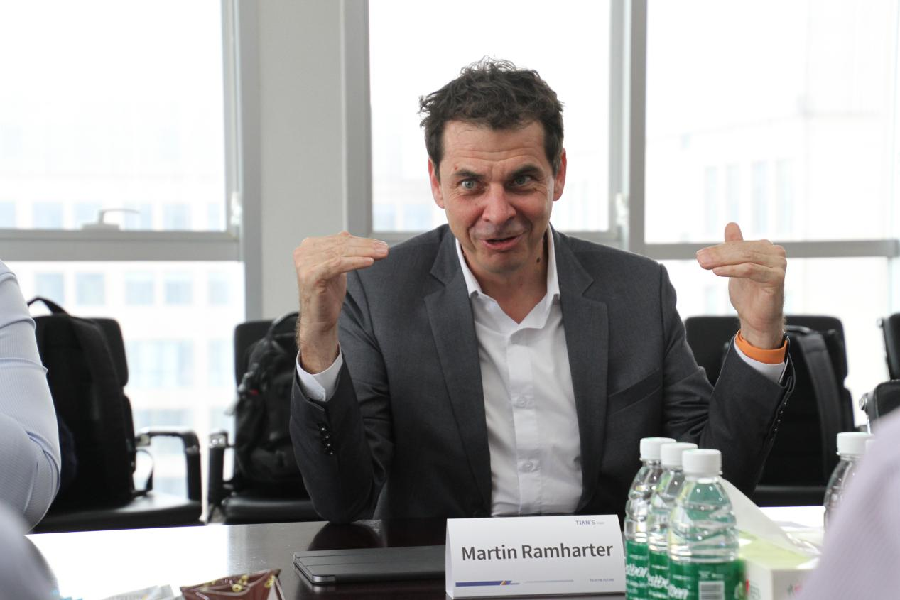 ? ? ? ? 4月19日,西門子(SIEMENS)全球制藥行業拓展總監Martin Ramharter, 全球制藥行業拓展經理Philipp Doecke, 中國制藥行業總經理程琦茗,河北山西區域總經理王昌秀,制藥行業能力中心總監尤東升,行業銷售馬洪佺等代表一行來訪天俱時參觀洽談。天俱時集團董事長、總裁劉金濤,董事、副總裁宋曉暉,自動化與信息化首席技術官岳宗禮等領導熱情接待了代表團一行。