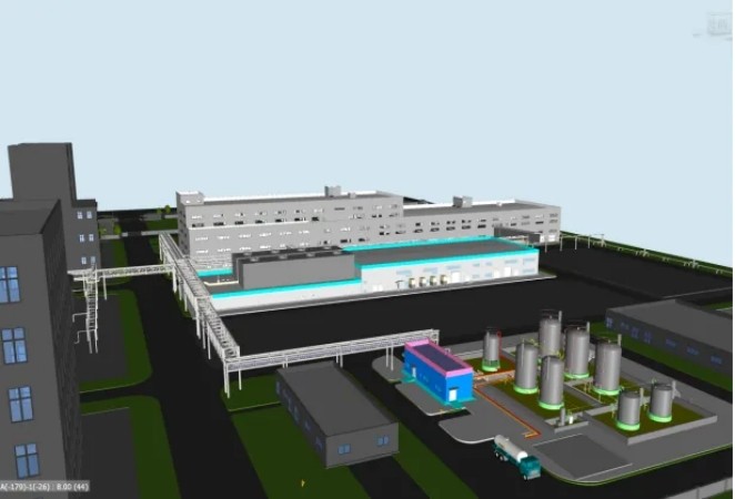 為更好地優(yōu)化管線布局,合理規(guī)劃建筑工期,天俱時結(jié)合數(shù)字化設計能力,在該項目前期對原有車間、新建車間、預留車間以及廠區(qū)管廊等設施進行了整體的BIM優(yōu)化設計,確保各車間的最優(yōu)布置和方案。同時,針對發(fā)酵車間,為保證發(fā)酵過程的無菌率以及設備閥組的整體布置合理及美觀,天俱時BIM團隊對發(fā)酵車間中的發(fā)酵罐與種子罐以及補料罐進行了合理的優(yōu)化,根據(jù)工藝要求將空氣過濾器、閥組的布置和管道的走向進行優(yōu)化,確保管道布置無死角,滿足發(fā)酵工藝要求的同時讓后期操作檢修更為方便,提升整體觀感,實現(xiàn)所見即所得。